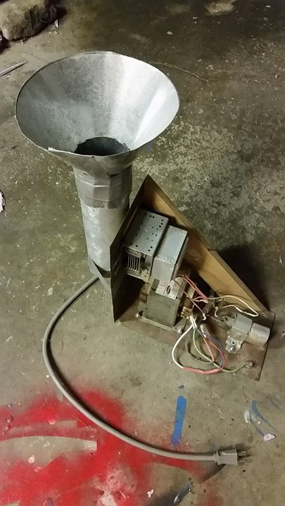 I repurposed an old microwave with the intent to make a microwave gun.  When I first had the idea I had an initial delusional vision of it being able to be effective at considerable range, but unfortunately the math just doesn’t hold up.  Just the same I studied the design principals of a properly sized wave guide and how to position the magnetron to set up a standing wave and best direct the radiation and built a calculator to size for this particular build.
